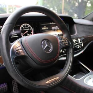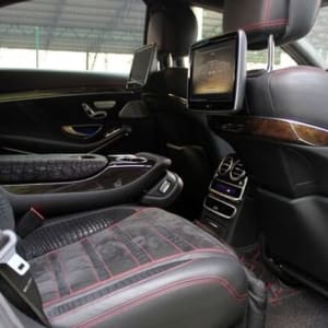 Премиум отделка салона кожей аллигатора, комплектация самая максимальная, включая датчики света и дождя, передние и задние парктроники, камера заднего и кругового обзора, климат-контроль четырёхзонный, адаптивный круиз-контроль, навигационная система, система контроля слепых зон, система ночного видения, распознавание разметки, датчик приближения, подогрев, вентиляция, электропривод и память всех сидений, подогрев руля, автоматическое открывание багажника, бесключевой доступ, музыкальная система премиум-класса Burmester, громкая связь, TV Для задних пассажиров, доводчики дверей, электрические шторки и многое другое.