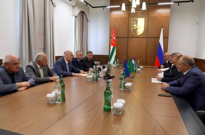 Президент Абхазии Аслан Бжания встретился с Главой Республики Адыгея Муратом Кумпиловым, Главой Кабардино-Балкарской Республики Казбеком Коковым и делегацией из Карачаево-Черкесии во главе с председателем Парламента республики Александром Ивановым.