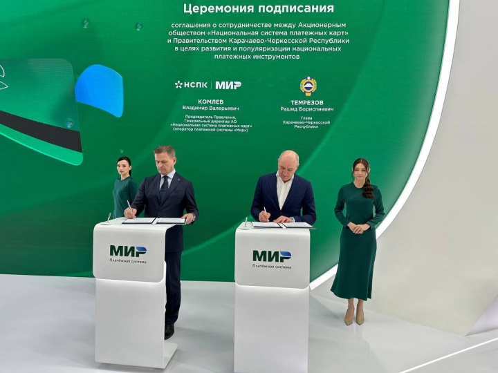 Сегодня в рамках работы Петербургского Международного экономического форума Глава Карачаево-Черкесской Республики Рашид Темрезов и генеральный директор АО «Национальная система платежных карт» Владимир Комлев подписали Соглашение о взаимодействии и развитии сотрудничества.