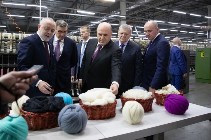 Председатель Правительства РФ Михаил Мишустин, Полпред Президента РФ Юрий Чайка и Глава Карачаево-Черкесии Рашид Темрезов посетили предприятие по переработке овечьей шерсти "В