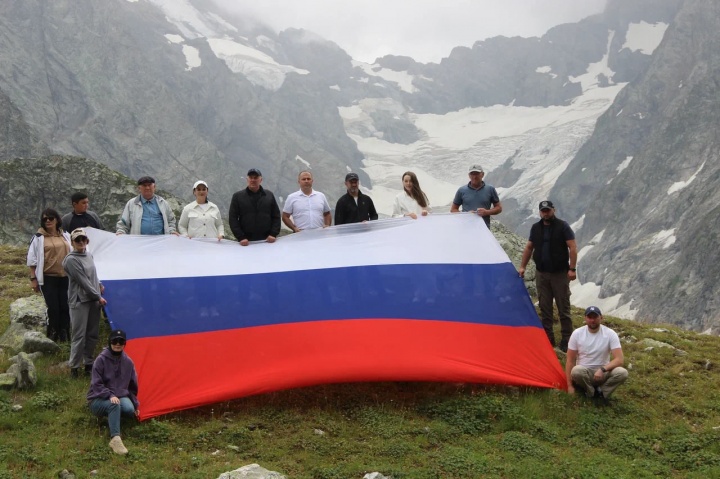 Сотрудники Администрации Карачаевского городского округа совершили массовое восхождение на Клухорский перевал, где развернули Российский флаг. Мероприятие было приурочено ко Дню государственного флага Российской Федерации.