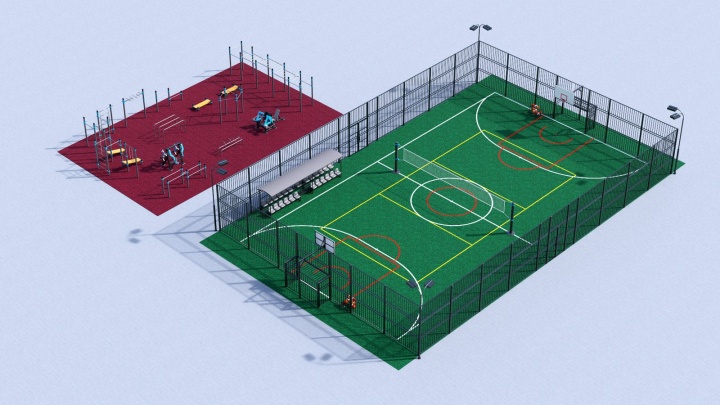 На площадке, в частности, будет установлена игровая зона для баскетбола, футбола, волейбола общим размером 32х19 метров, а также зона для воркаута размером 19х12 метров.