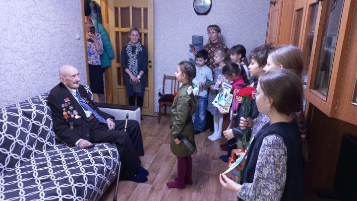 19 февраля, в преддверии празднования Дня защитника Отечества, учащиеся и педагоги Воскресной школы Никольского собора города Черкесска пришли поздравить с праздником ветерана Великой Отечественной войны Афанасия Петровича Солнышкина, которому в январе исполнилось 103 года.