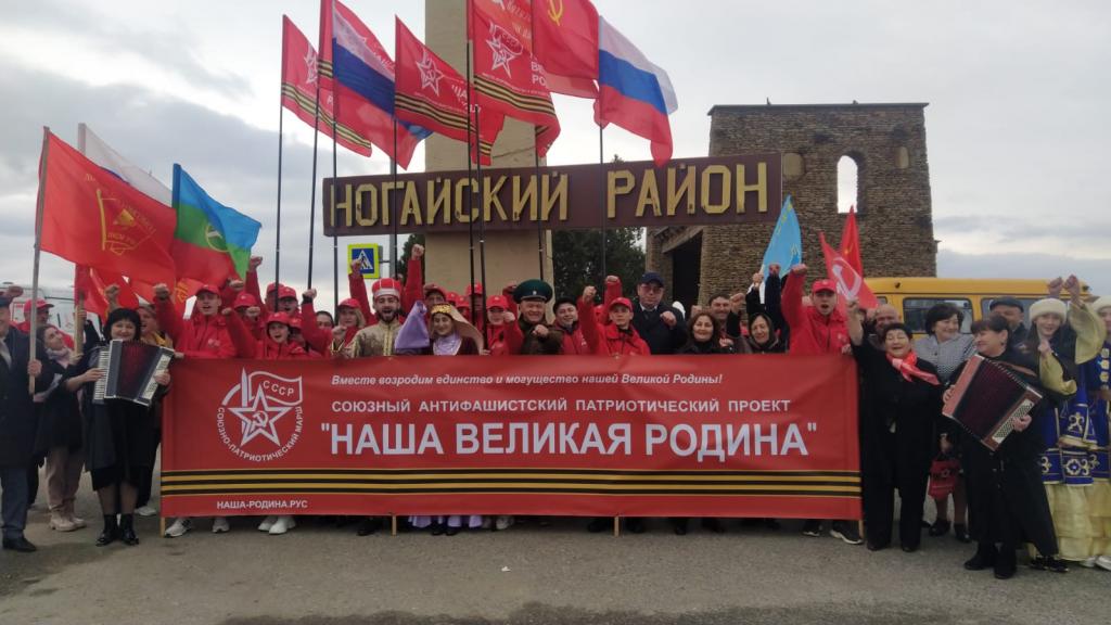 Жители Ногайского района встретили 27 марта на границе республики участников автопробега традиционными чашами айрана, лакумом и зажигательными танцами в национальных костюмах. Гостей приветствовали глава администрации района Мурат Хапиштов и первый секретарь Ногайского райкома КПРФ Муратхан Михайлович. Над собравшимися гордо реяли красные флаги в руках активистов КПРФ. Особенно тепло был встречен гостями пионерский танец под мелодию «Катюши», так полюбившейся советским бойцам на фронтах Великой Отечественной.