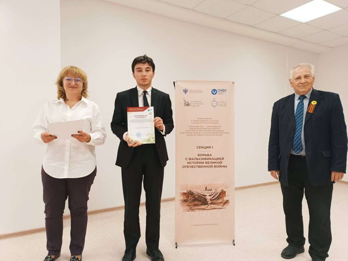 Студенты историческое факультета КЧГУ имени У.Д.Алиева, представители студенческого научного общества Мурат Токов и Руслан Кипкеев приняли участие в научном молодежном форуме, посвященном исторической памяти и единству народов “Сражения 1943 г. – изменившие ход Второй мировой войны в исторической памяти молодежи”. Мероприятие прошло в СКФУ. Участниками форума стали ученые из России, Абхазии и Армении, представители Российского исторического общества. Исследователи из учащейся и студенческой молодежи и уже опытные эксперты-ученые в области истории, юриспруденции, социологии, медиакоммуникаций и других гуманитарных наук разобрали темы исторической важности. -Мы выступили на форуме с докладами “Горцы Кавказа во время немецкой оккупации” и “Мать и сын. Война и мир”, – рассказали Мурат и Руслан. – Хотим поблагодарить факультет и руководство нашего вуза за возможность принимать участие в мероприятиях такого уровня,где мы знакомимся с представителями других вузов, делимся опытом, узнаем для себя много нового.