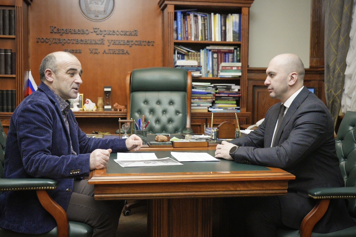 Сегодня и.о. ректора КЧГУ Таусолтан Узденов встретился с руководителем УФАС России по Карачаево-Черкесии Артуром Куантовым.
