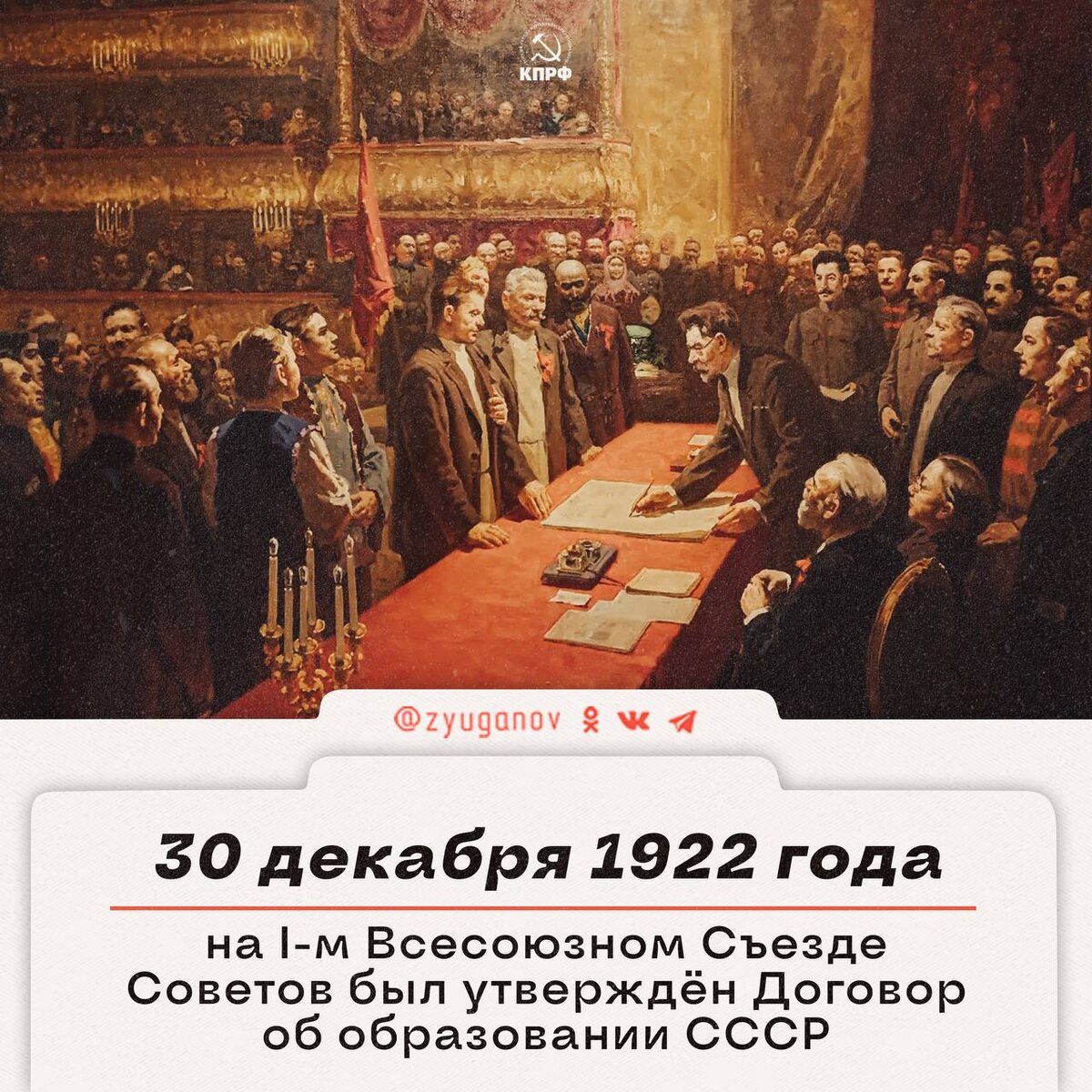 30 декабря 1922 года на I-м Всесоюзном Съезде Советов был утверждён Договор об образовании СССР https://dzen.