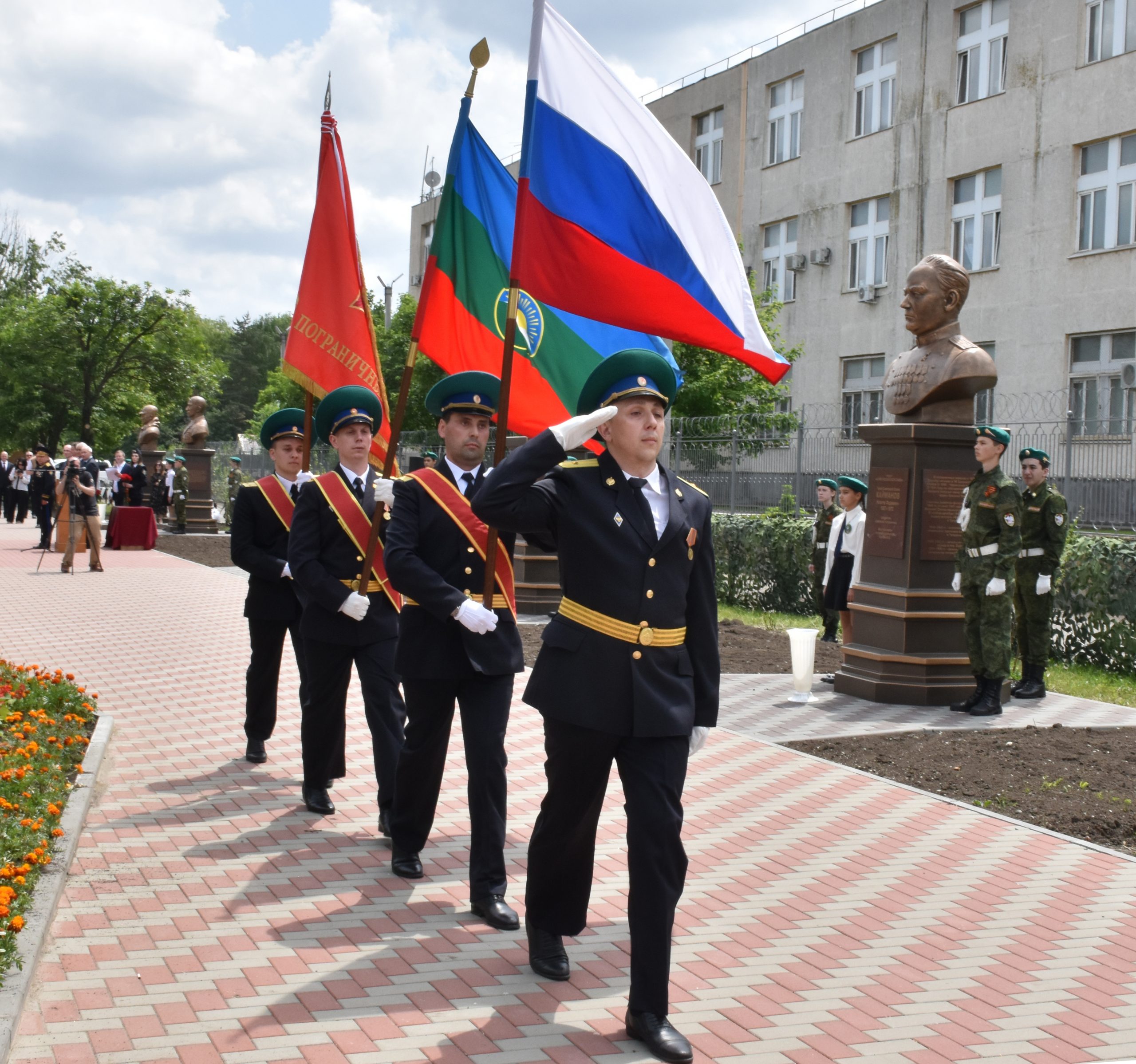 Под звуки фанфар “Аллею пограничной славы” открыли начальник ПУ ФСБ по КЧР генерал-майор Андрей Самороков, депутат Парламента КЧР Игорь Гонов, вице-премьер Правительства КЧР Дмитрий Бугаев, мэр г. Черкесска Алексей Баскаев, председатель регионального отделения Российского совета ветеранов пограничной службы в КЧР Сергей Юрьев.