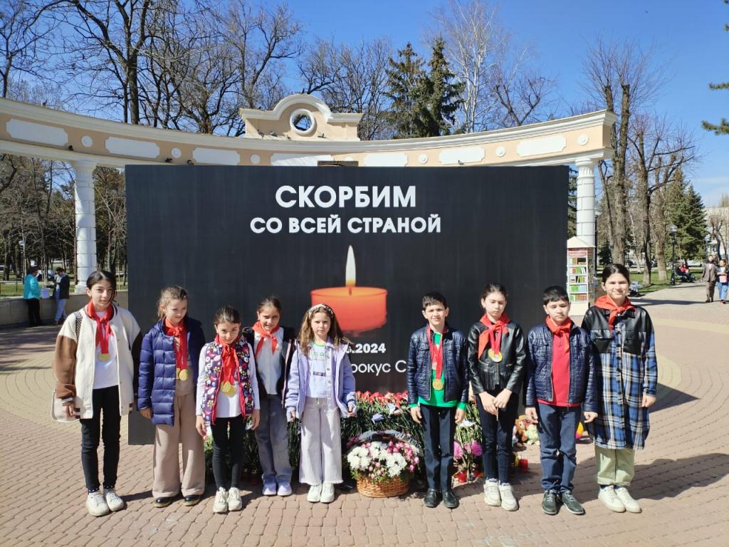 Затем участники сбора отправились на улицу Первомайскую, где почтили память погибших сверстников во время террористического акта в "Крокус сити холле".