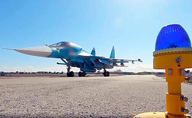 На фото: бомбардировщик Су-34 Вооруженных сил РФ. (Фото: Пресс-служба Минобороны РФ/ТАСС)