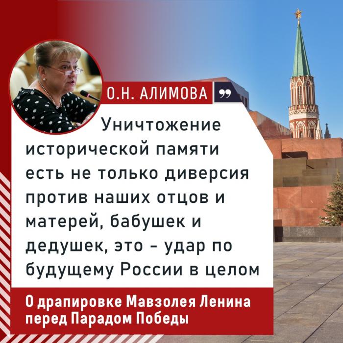 Ольга Алимова: "КПРФ публично выступает категорически против того, чтобы в день 78-летия Великой Победы стыдливо прикрывать правду истории за фанерными щитами" Власть вновь задрапирует мавзолей В.И.