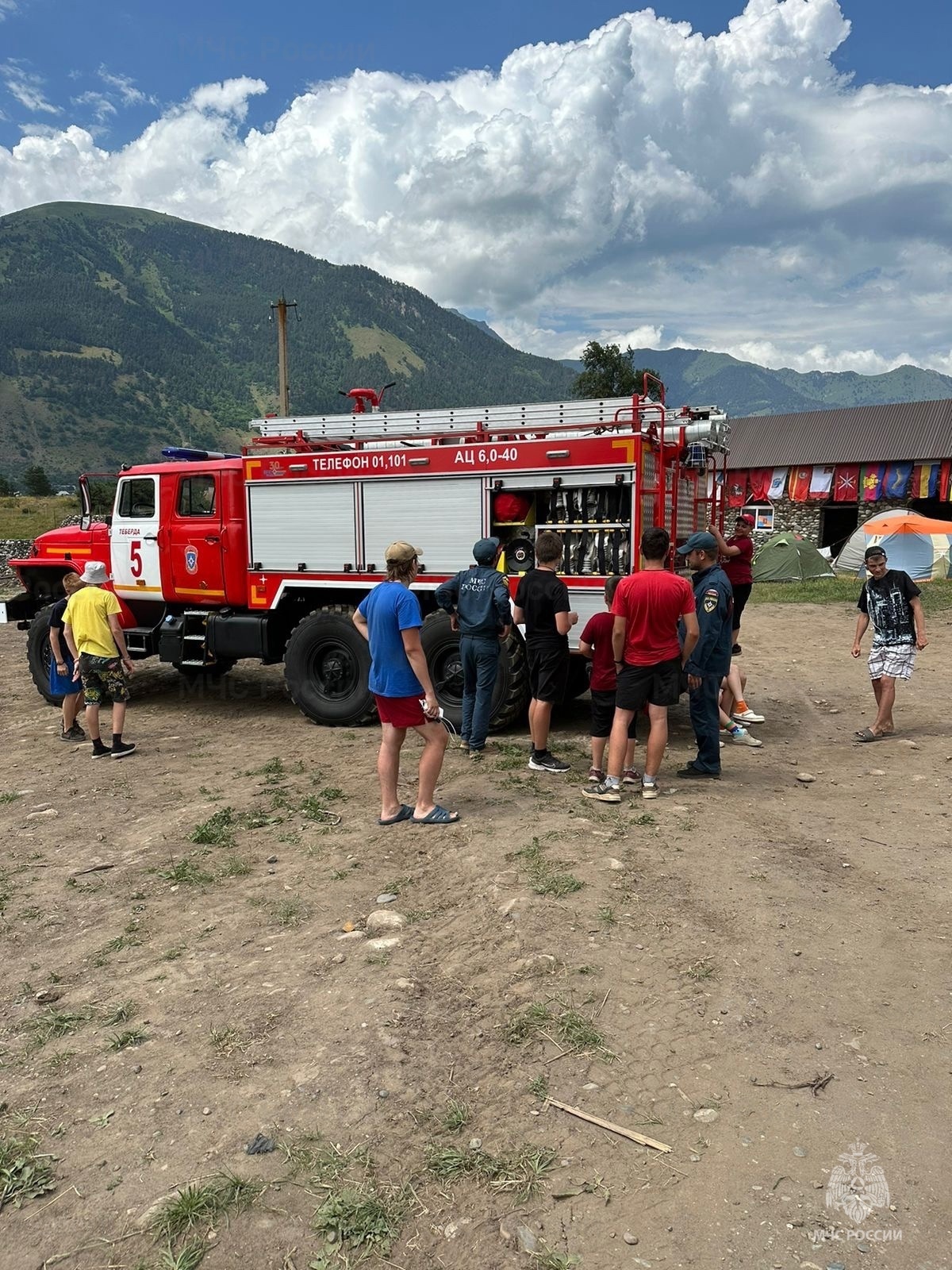 Сотрудники пожарно-спасательной части №5 г.Теберда провели показ техники для детей, отдыхающих в палаточном лагере «Альтаир».