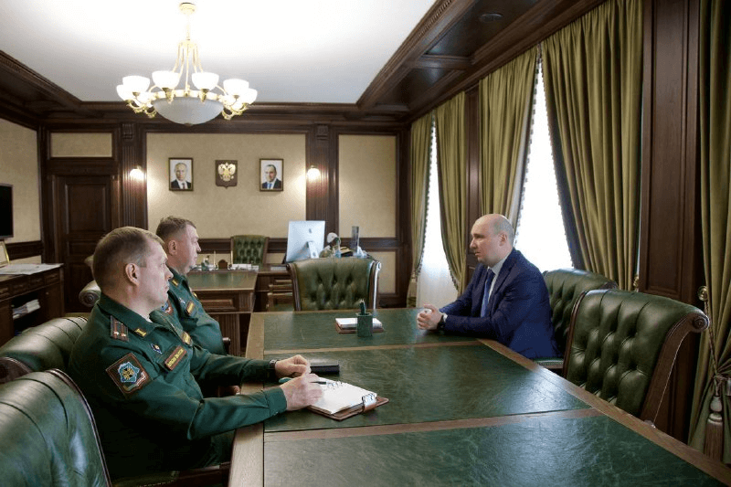 Военный комиссар Карачаево-Черкесской Республики Сергей Белобородов представил мэру региональной столицы Алексею Баскаеву военного комиссара Черкесска полковника Андрея Хвостикова.