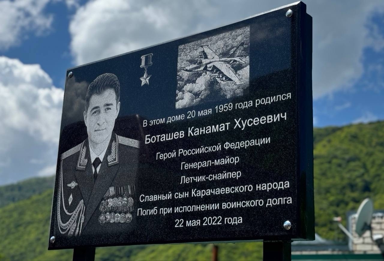 Мэр Карачаевского городского округа Марат Урусов принял участие в церемонии открытия мемориальной доски в честь героически погибшего при исполнении воинского долга в ходе специальной военной операции генерал-майора ВВС, Героя Российской Федерации Канамата Хусеевича Боташева.