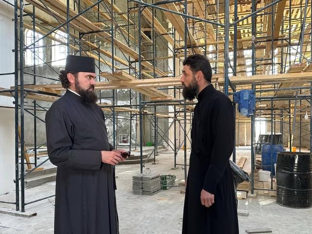 Затем Архиерей осмотрел ход капитальной реконструкции храма святых праведных Иоакима и Анны села Санамер. В здании уже укреплены стены, залиты своды приделов, готовится заливка главного купола.