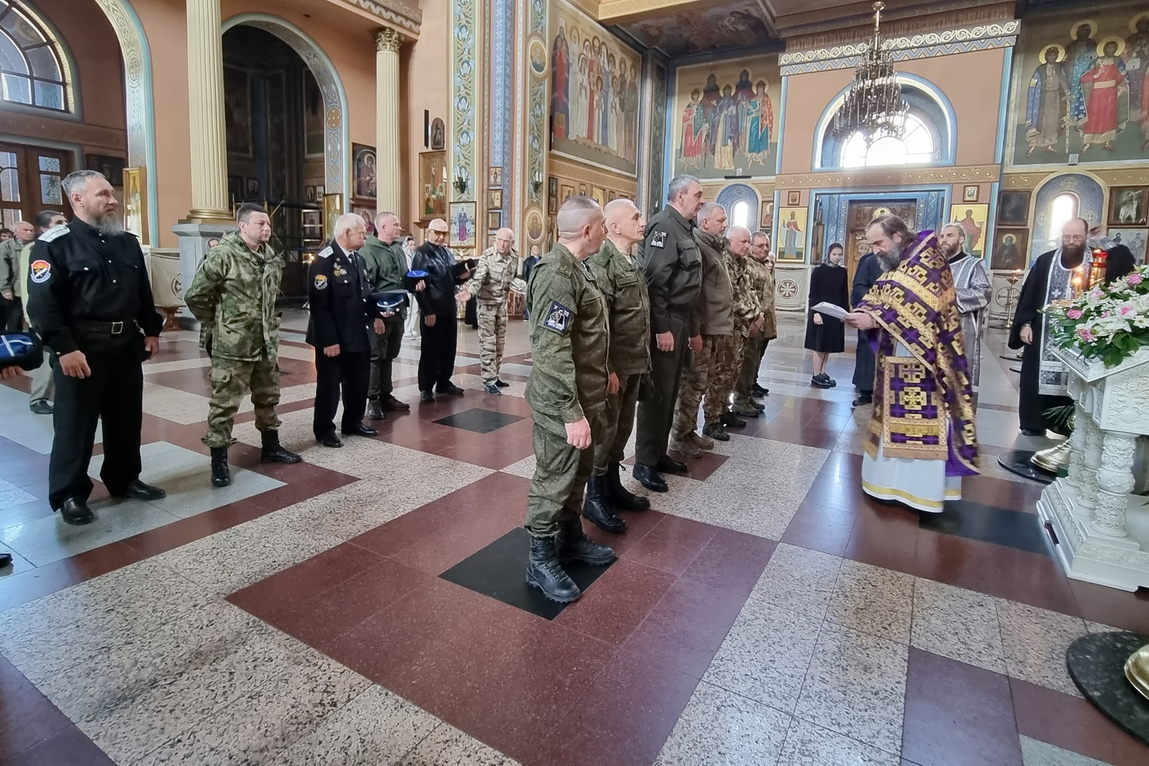 Помолиться перед дорогой в зону специальной военной операции в Никольском соборе собрались восемь казаков Кисловодского казачьего общества с заместителем командира казачьего добровольческого отряда «Сибирь» бригады «Терек», полковником Сергеем Мерзеликиным.
