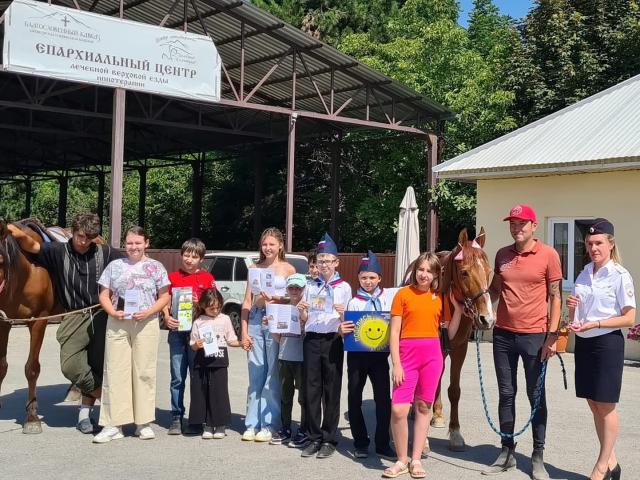 Ребята из объединения «Юные инспекторы движения России» вместе с сотрудником ГИБДД провели для подопечных Центра иппотерапии Пятигорской епархии «Целебный Ессентуки» инструктаж по правилам дорожного движения и основам бе