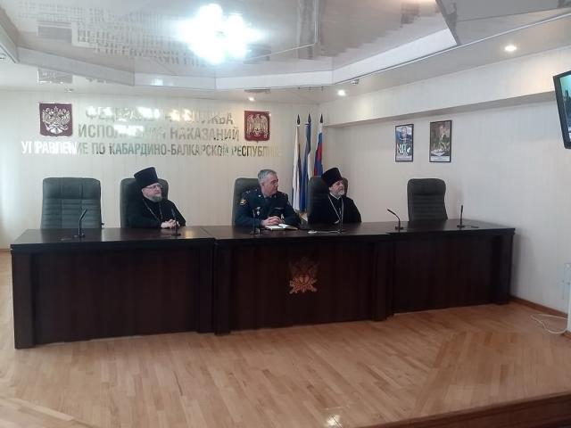 27 марта 2023 года, благочинный Нальчикского округа Пятигорской епархии протоиерей Валентин Бобылев с духовенством благочиния, ответственным за работу с заключенными, участвовали во Всероссийском обучающем семинаре по работе духовенства и сотрудников УИС в сфере ресоциализации и духовно-нравственного просвещения подозреваемых, обвиняемых и осужденных.