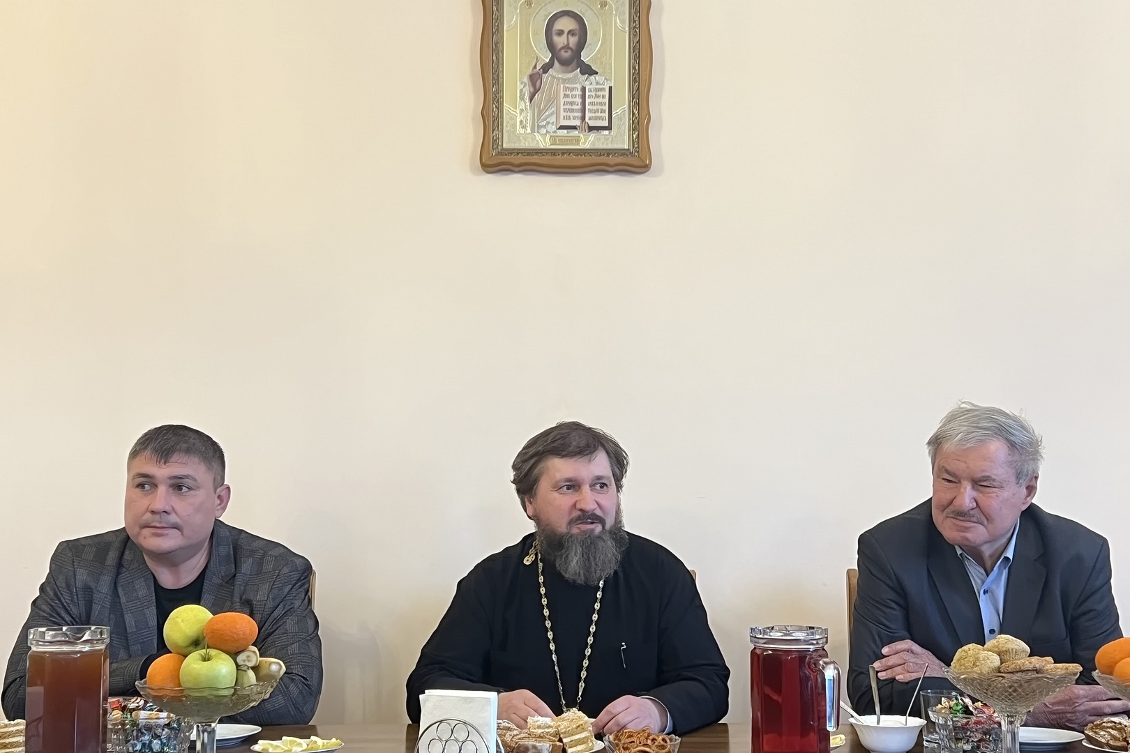 На территории казачьего Никольского храма города Ессентуки состоялось заседание Правления Ессентукского казачьего общества. ТВКО. В общении участвовал руководитель епархиального отдела по взаимодействию с казачеством и настоятель храма протоиерей Стефан Фещенко , который передал атаманам и казакам благословение архиепископа Пятигорского и Черкесского Феофилакта.