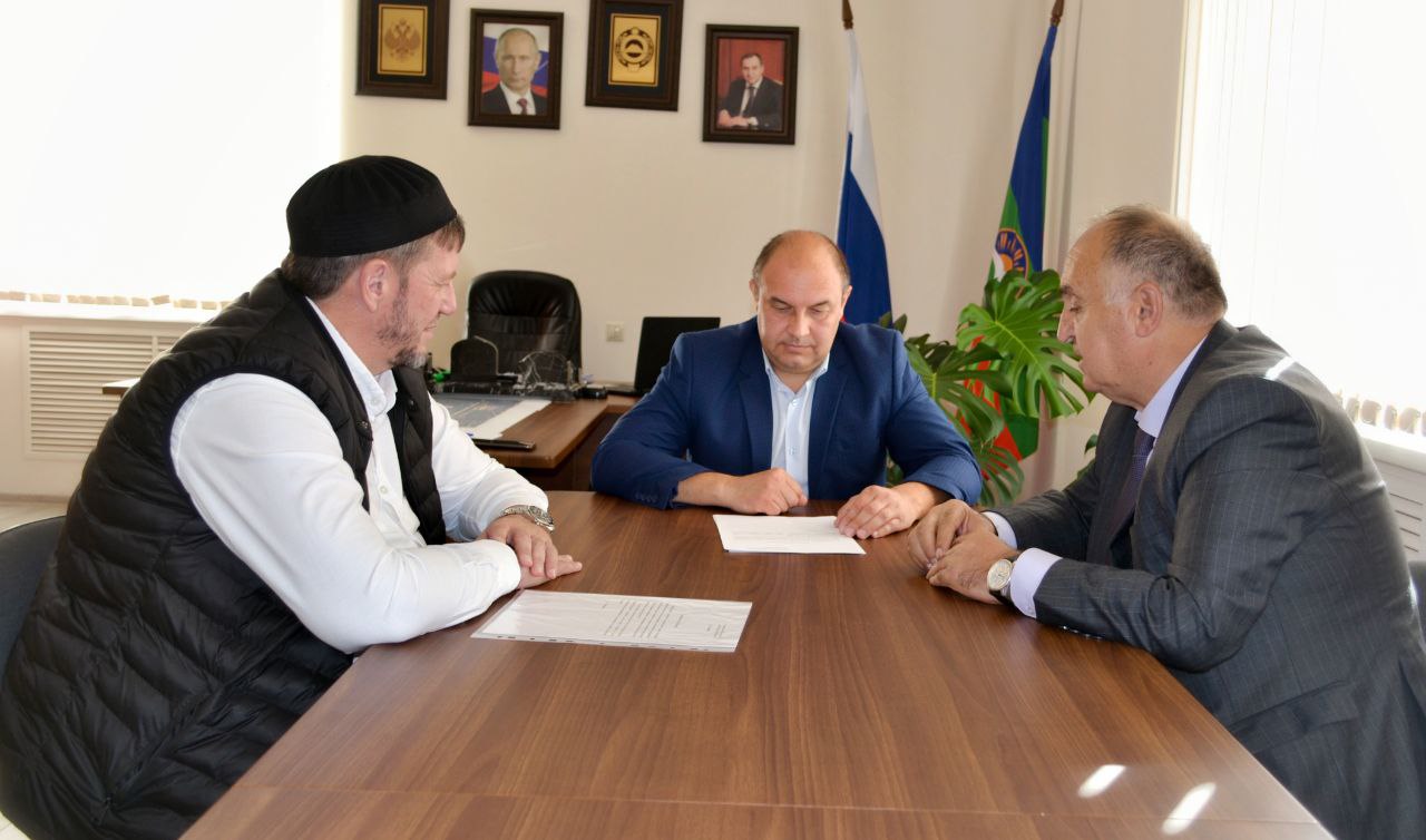 Сегодня и. о. главы администрации Зеленчукского района Александр Шайдаров провёл рабочую встречу с главным кадием Духовного управления мусульман КЧР, заместителем муфтия Муратбием-Хаджи Лайпановым.