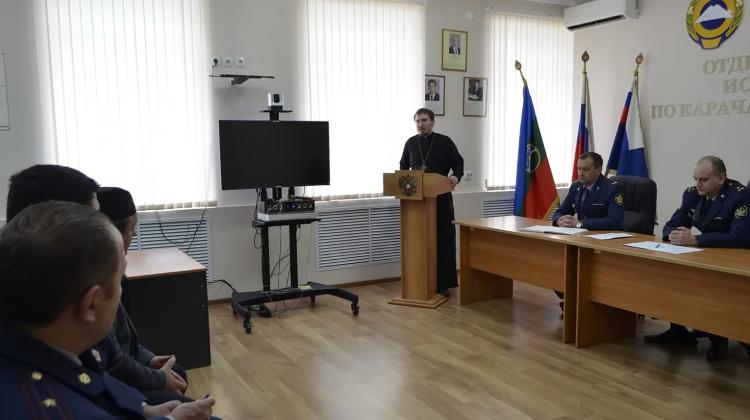Как сообщает пресс-служба ОФСИН по КЧР с сотрудниками территориального органа и осужденными, отбывающими наказание в следственном изоляторе города Черкесска, побеседовали представители духовенства священник Никольского собора города Черкесска иерей Алексей Иманов , и помощник муфтия Карачаево-Черкесии Анзор-хаджи Апсов.