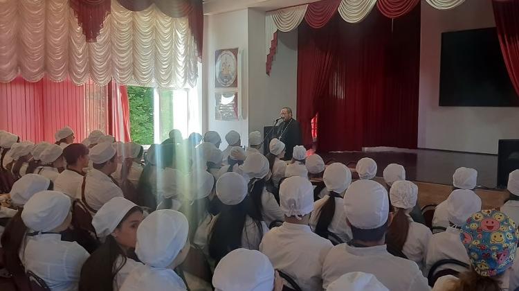 Священник Никольского собора города Кисловодска протоиерей Андрей Грамацкий выступил на беседе о профилактике экстремизма, которая состоялась в Кисловодском медицинском колледже.