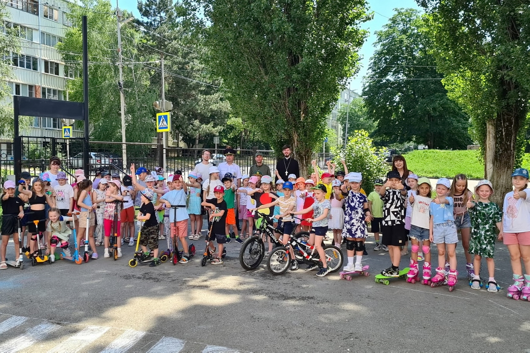 Священник Покровского храма города-курорта Железноводска иерей Андрей Тарнакин вместе с сотрудниками Госавтоинспекции и представителями Общественного совета при городском Отделе МВД России, казачества и волонтерского отряда «Железноводский оплот» побеседовал с воспитанниками пришкольного лагеря начальной школы.
