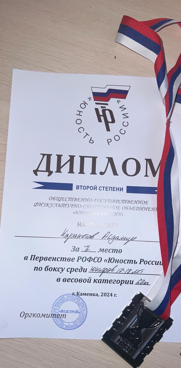 С 17 по 23 марта 2024 года в г. Каменка, Пензенской области, прошло первенство РОФСО «Юность России» по боксу. В соревнованиях участвовали боксёры Усть-Джегутинского муниципального района. Наилучшего результата добился Каракотов Айдемир, ему вручили серебряную медаль. Тренирует спортсмена тренер-преподаватель Каракотов Р.В.