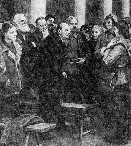 На фото: В.И. Ленин на II Всероссийском съезде работников медико-санитарного труда. Москва, 29 февраля 1920 г. Репродукция с картины художника А.П. Левитина (фрагмент).